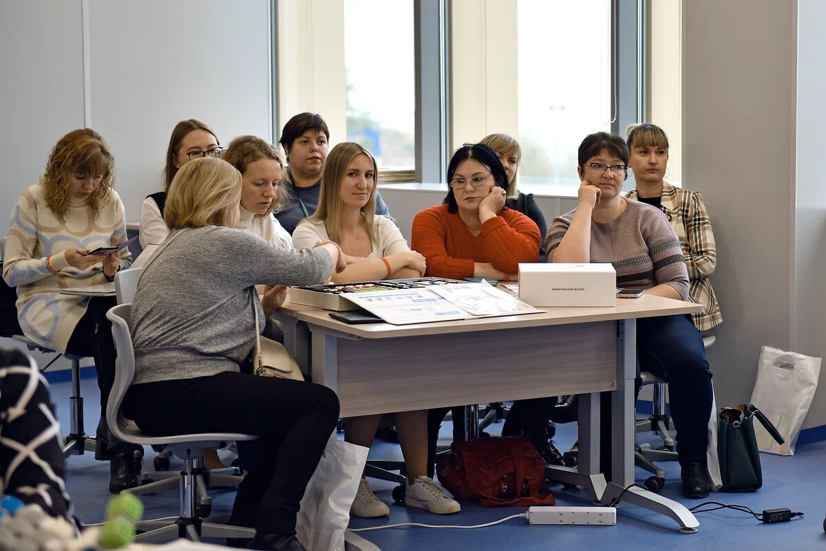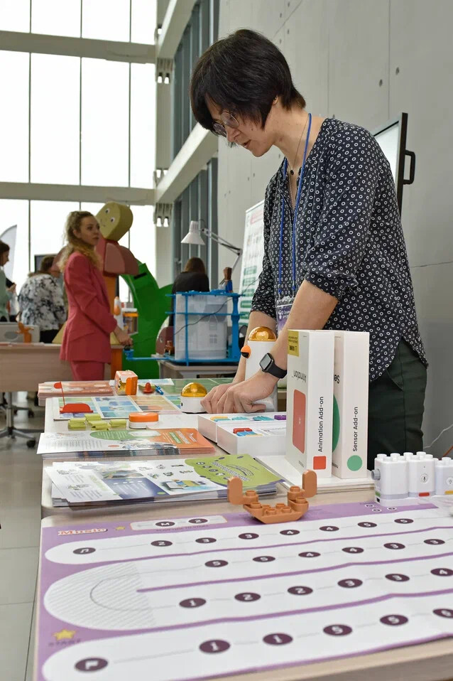 А после выставки все участники отправились на мастер-классы, чтобы получить новые знания и обменяться опытом с коллегами. Специалист образовательной платформы Технариум.ТВ, методист и педагог дополнительного образования Регионального центра технического творчества Челябинской области Фролова Рафаела Армановна проводила ознакомительный мастер-класс по образовательному решению “Икаренок супер”. Кроме того, была презентована 4 часть одноименной серии книг для педагогов.
